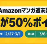 【激アツ】Kindle対象漫画が50%ポイント還元!Amazonマンガ週末祭り第四弾開催!!!