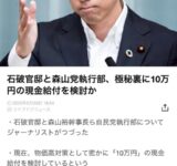 石破政権、極秘裏に10万円給付金を検討!?!?!?